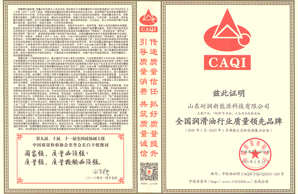 全國(guó)潤(rùn)滑油行業(yè)質(zhì)量領(lǐng)先品牌