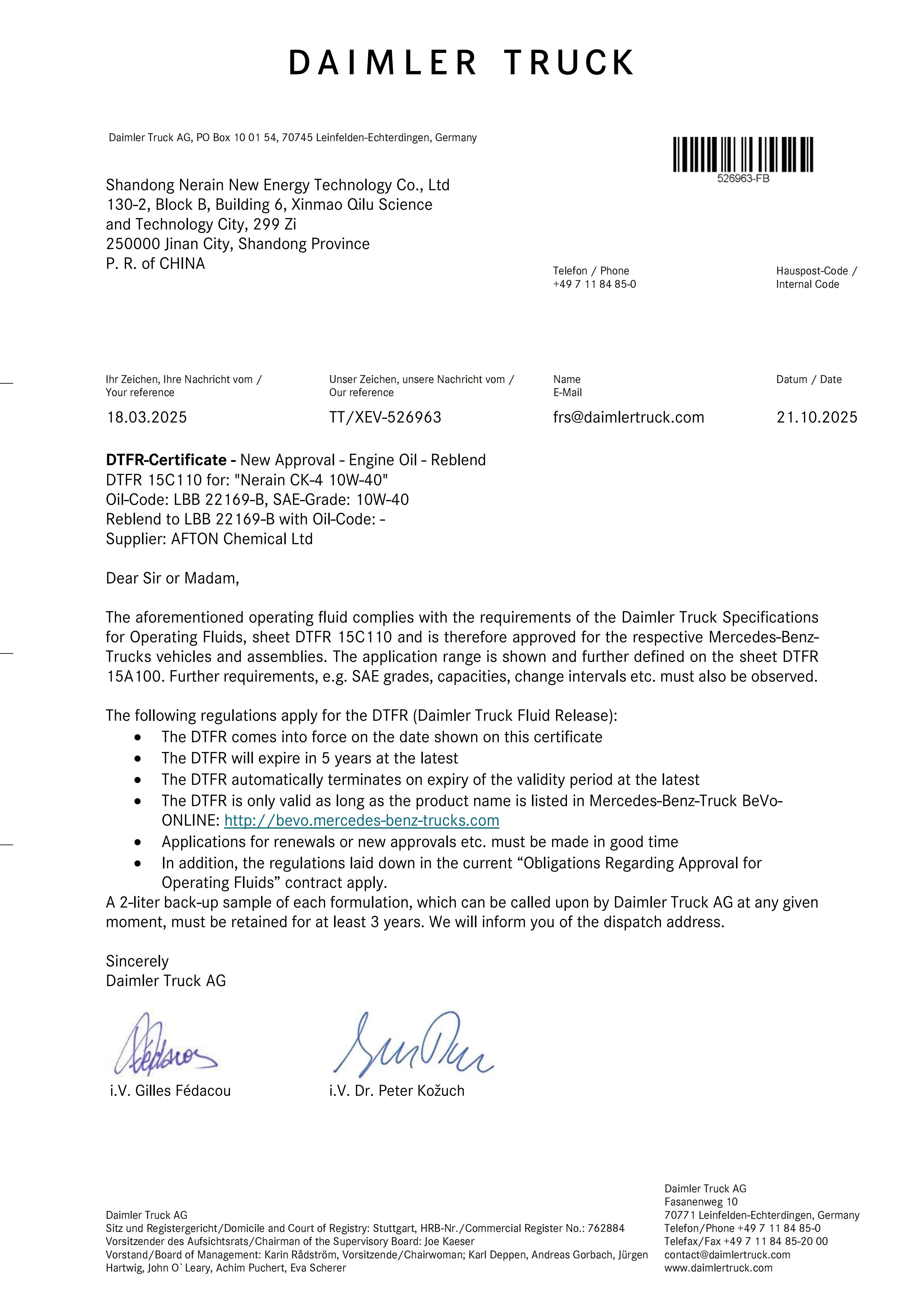 戴姆勒奔馳重卡15C110認證