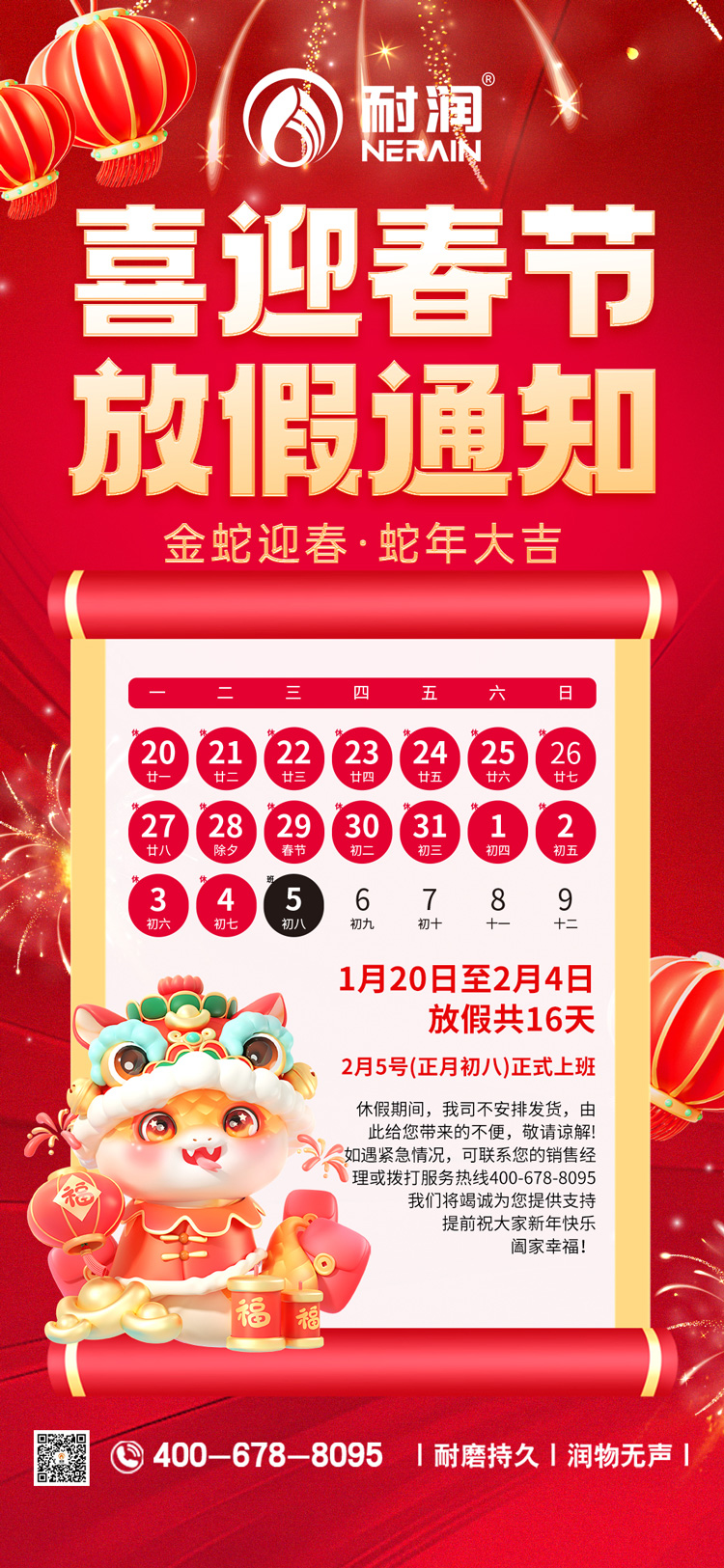 耐潤(rùn)潤(rùn)滑油2025年春節(jié)放假通知!