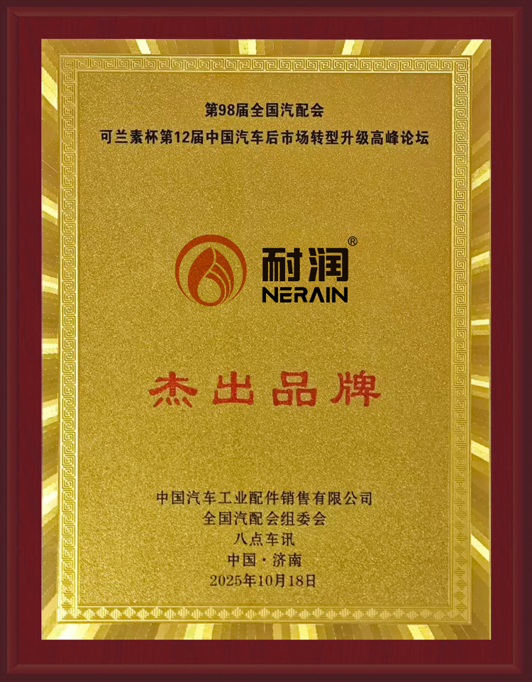 2025 年 10 月 18-20 日,第 98 屆全國汽車配件交易會在山東國際會展中心盛大啟幕,同期第 12 屆中國汽車后市場轉(zhuǎn)型升級高峰論壇同步召開。耐潤潤滑油憑借卓越的產(chǎn)品品質(zhì)、領先的技術實力、廣泛的市場認可度以及持續(xù)的品牌影響力, 榮獲“杰出品牌”獎項!