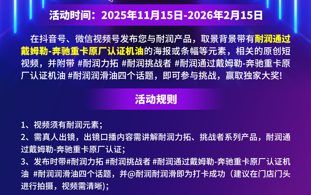 耐潤(rùn)挑戰(zhàn)杯 | 曬重卡日常 贏品質(zhì)機(jī)油!