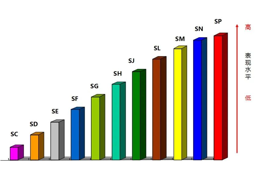我國是按照API標(biāo)準(zhǔn)來分類—SA<SB…<SP,(以S開頭,后面跟上字母A、B、C…,順序越往后,質(zhì)量等級越高,使用性能越好)目前SP是汽機油最高級別。
